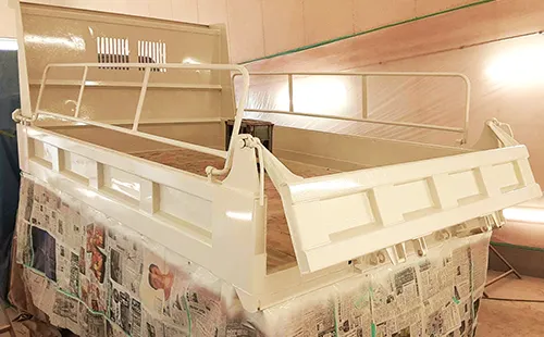 乗用車からトレーラーまで、そのまま入る塗装工場を所有しているので、どんな車両の塗装にも